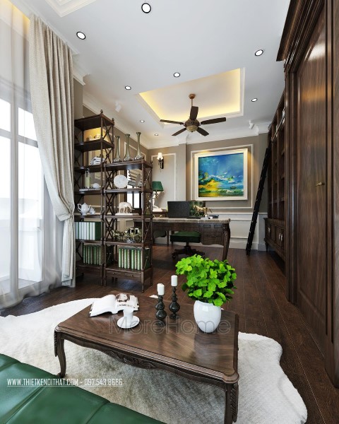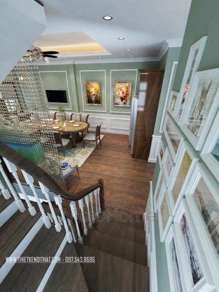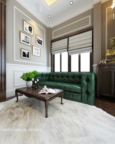 Một trong những không gian sum họp được ưa thích trong căn nhà chính là thiết kế khu sinh hoạt chung riêng biệt cho các thành viên trong gia đình. Được thiết kế riêng biệt dành riêng cho các hoạt động vui chơi, giải trí của cả gia đình, đây thực sự là nơi lý tưởng để nghỉ ngơi và thư giãn. Thiết kế sắc màu xanh, tím dường như phá vỡ quy luật tự nhiên của thiết kế tân cổ điển mà thay vào đó là sự hiện đại, năng động và trẻ trung.