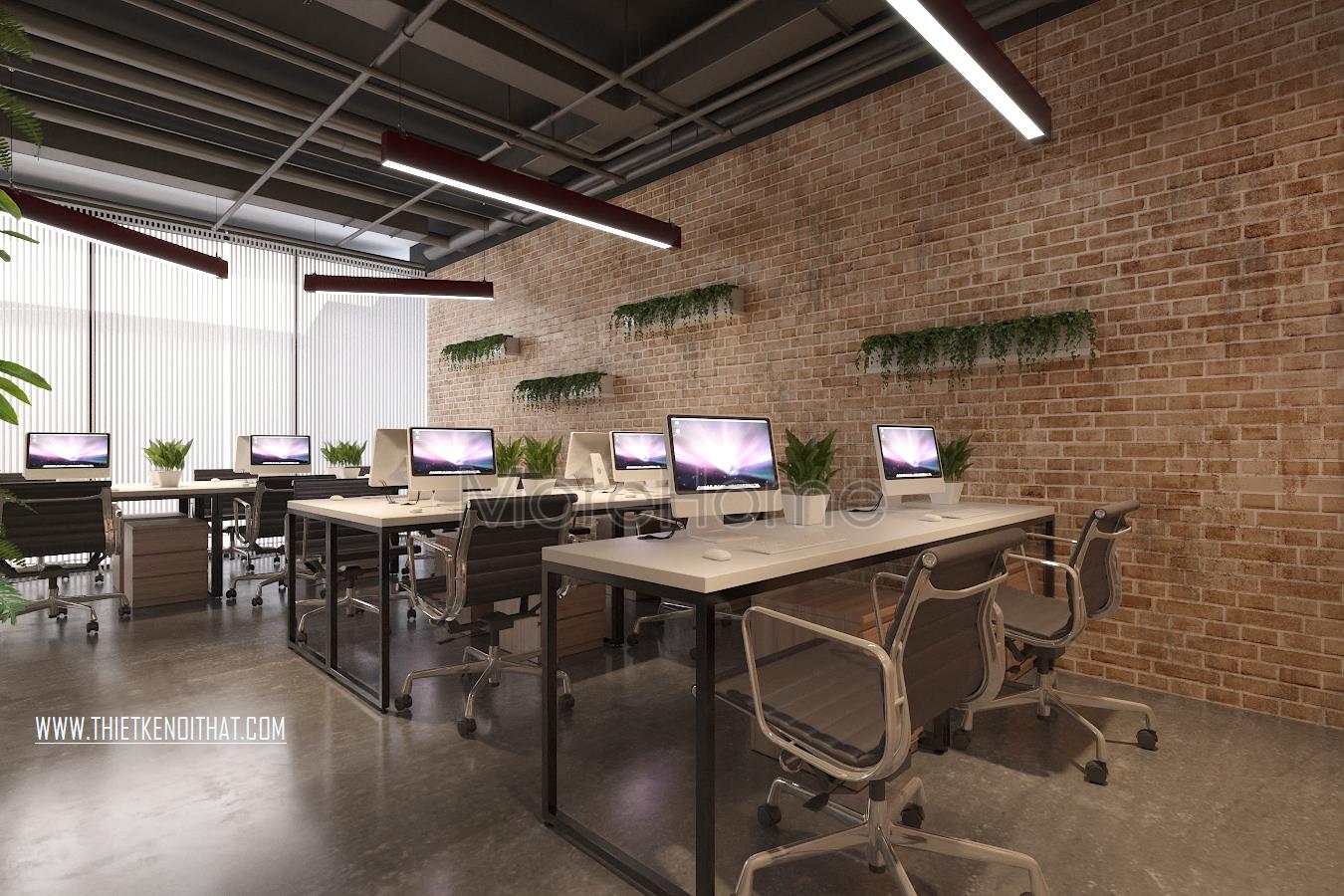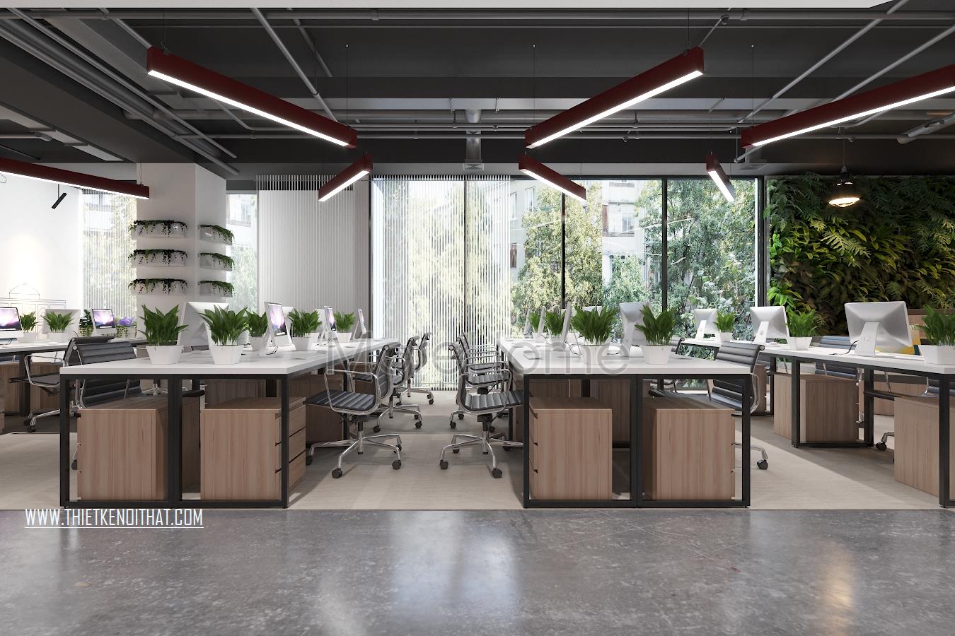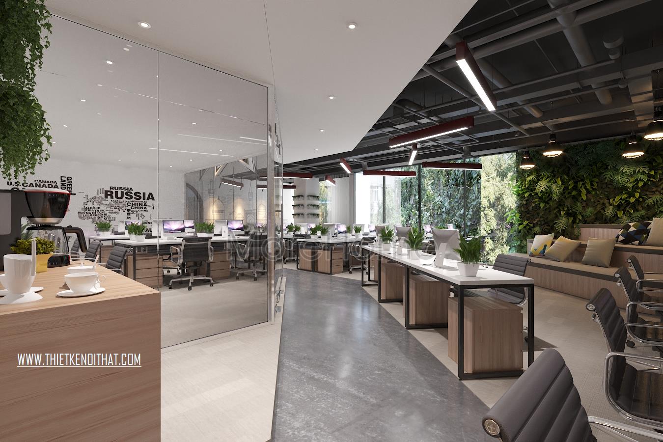 Trong không gian phòng làm việc của nhân viên được thiết kế với nhiều không gian khác nhau. Mỗi phòng ban được thi công với khoang làm việc riêng. Đối với nhân viên kinh doanh, chúng tôi lựa chọn thiết kế mở với nhiều không gian kết nối với bên ngoài, trần thô. Khu vực nhân viên nghiên cứu phát triển sản phẩm lại được thiết kế trong phòng làm việc tạo nên từ vách kính cường lực. Các nhân viên có thể nghỉ ngơi tại tường thực vật và ghế ngồi gỗ để có thể lấy lại tinh thần làm việc tốt nhất.