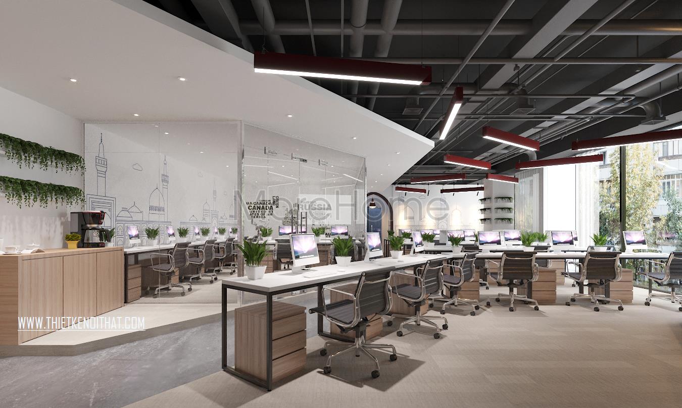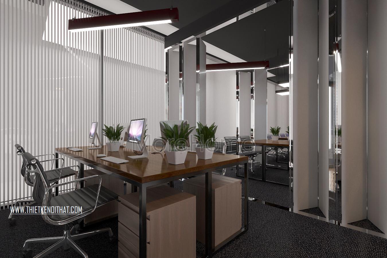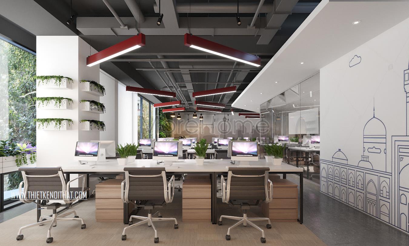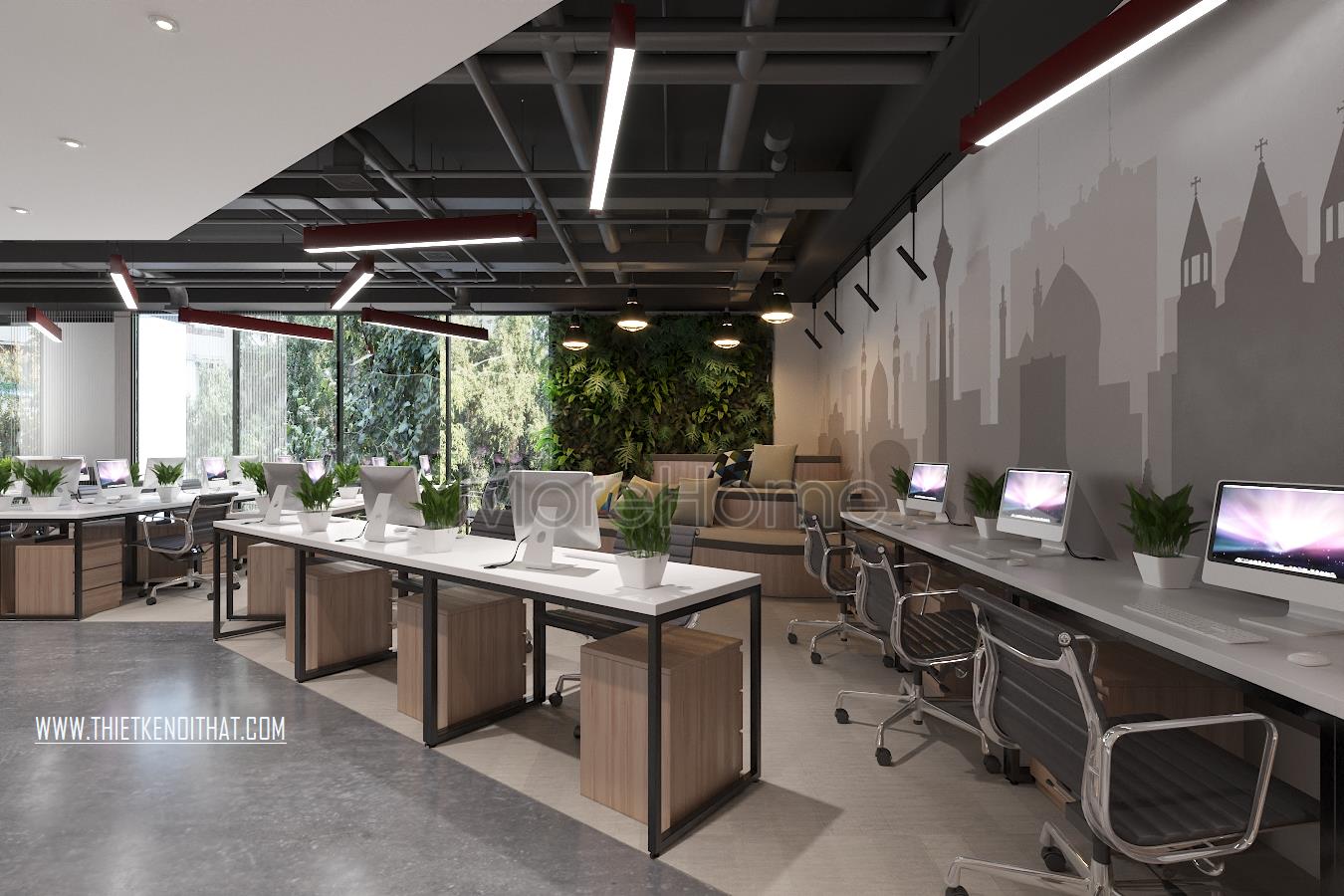 Trong không gian phòng làm việc của nhân viên được thiết kế với nhiều không gian khác nhau. Mỗi phòng ban được thi công với khoang làm việc riêng. Đối với nhân viên kinh doanh, chúng tôi lựa chọn thiết kế mở với nhiều không gian kết nối với bên ngoài, trần thô. Khu vực nhân viên nghiên cứu phát triển sản phẩm lại được thiết kế trong phòng làm việc tạo nên từ vách kính cường lực. Các nhân viên có thể nghỉ ngơi tại tường thực vật và ghế ngồi gỗ để có thể lấy lại tinh thần làm việc tốt nhất.