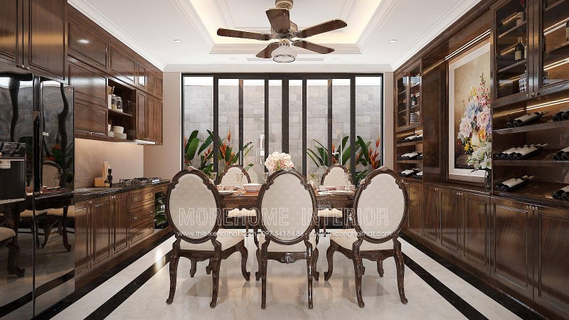 Thiết kế phòng bếp, phòng ăn nhà phố tân cổ điển