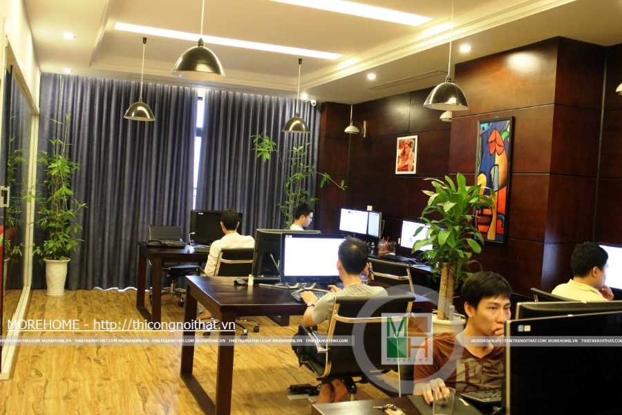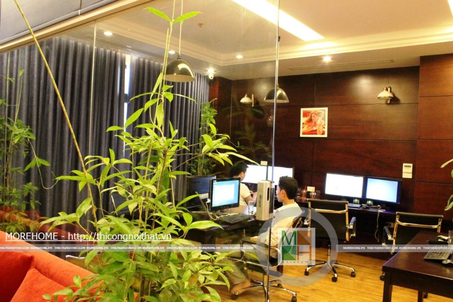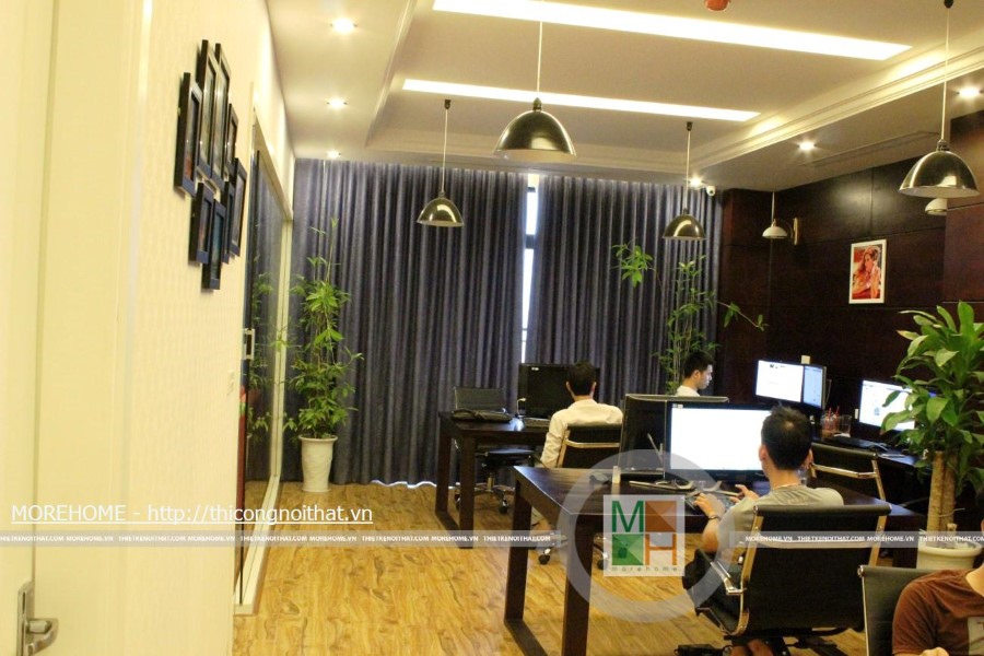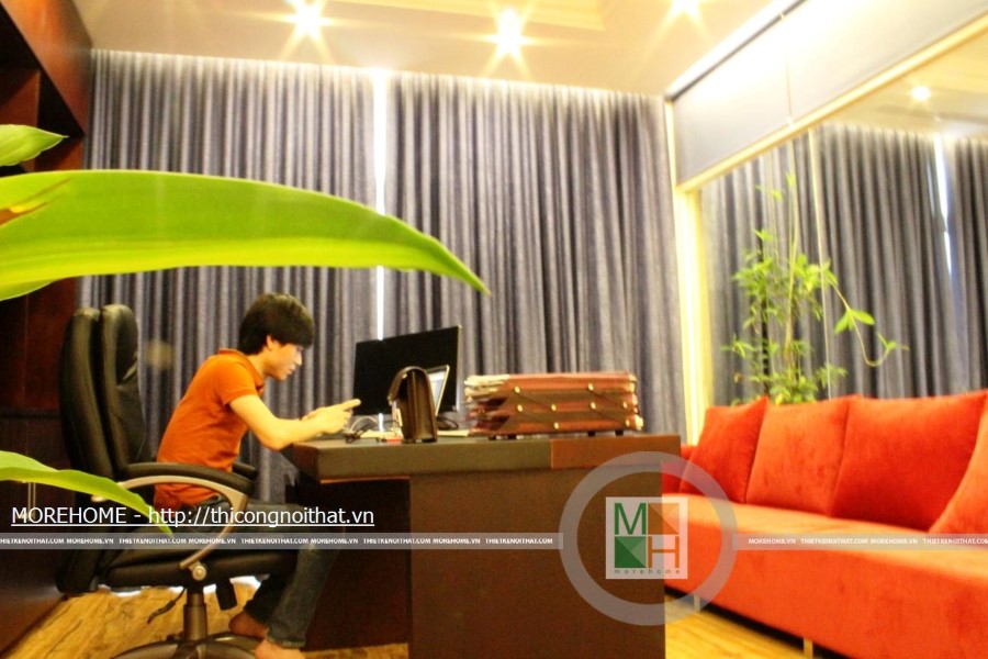 Văn phòng làm việc của Mr Tuấn tại Royal City với thiết kế và thi công nội thất đồ gỗ độc đáo, khoa học đã đem đến 1 môi trường xanh, sạch, đẹp khiến lòng người thêm hưng phấn. Đây cũng là 1 trong những hạng mục được tạo nên bởi các chuyên gia hàng đầu của Morehome và được nhiều người ưa thích. Hãy liên hệ với chúng tôi theo số điện thoại 0975438686 nếu có nhu cầu thiết kế, thi công nội thất nhà ở hay văn phòng làm việc.