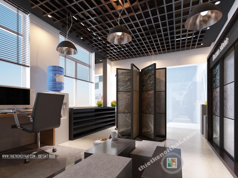 Bên cạnh đó, với một showroom nhỏ, hạn chế về mặt diện tích thì việc quan trọng là thiết kế một không gian đảm bảo tính công năng, vừa ý đối tượng khách hàng và tạo hiệu ứng mở rộng, đảm bảo độ thoáng cho công trình. Câu hỏi đặt ra là làm thế nào để showroom của bạn độc đáo, gây ấn tượng ngay cả khi diện tích của nó khá nhỏ. May mắn rằng, với đặc điểm của sản phẩm là đá, kiến trúc sư có được lợi thế lớn trong việc tạo độ phản chiếu và tránh cảm giác bí bách nhớ vào đặc tính mát của đá tự nhiên. Độ phản chiếu tự nhiên của đá, kết hợp với tông màu sáng tạo sức thu hút lớn đồng thời tạo độ tương phải giúp mang lại cảm giác cơi nới cho không gian.
