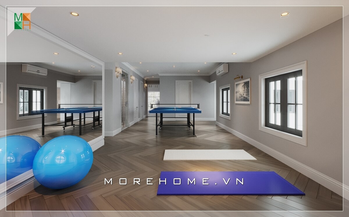 Phòng tập thể dục hiện đại tiện nghi trong thiết kế biệt thự là lựa chọn đầu tư hoàn hảo cho sức khỏe của các thành viên trong gia đình.