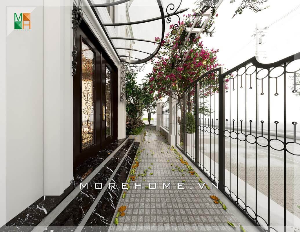 Khoảng sân bên ngoài biệt thự, nhà phố được thiết kế thoáng đãng, rộng rãi phục vụ cho nhu cầu sinh hoạt thư giãn ngoài trời của gia đình.