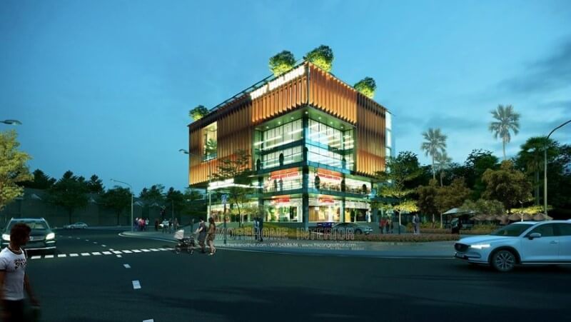 Mẫu thiết kế kiến trúc toàn nhà văn phòng và thương mai tại tp.Vinh