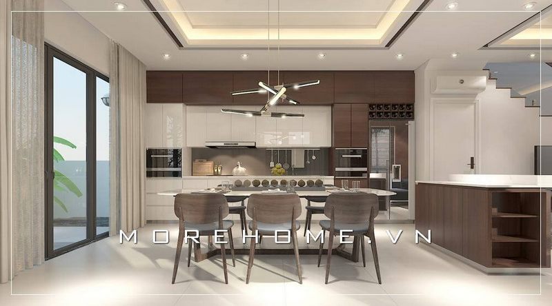Thiết kế nội thất phòng bếp ăn biệt thự đơn giản, hiện đại và tiện nghi