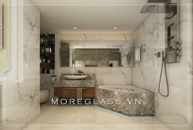 Mẫu thiết kế nội thất cho phòng tắm biệt thự có sự sang trọng và tiện nghi.