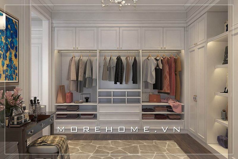 Mẫu tủ quần áo gỗ tự nhiên được phun sơn trắng sang trọng và tinh tế, tỏ ra đẳng cấp của chủ nhân căn phòng.